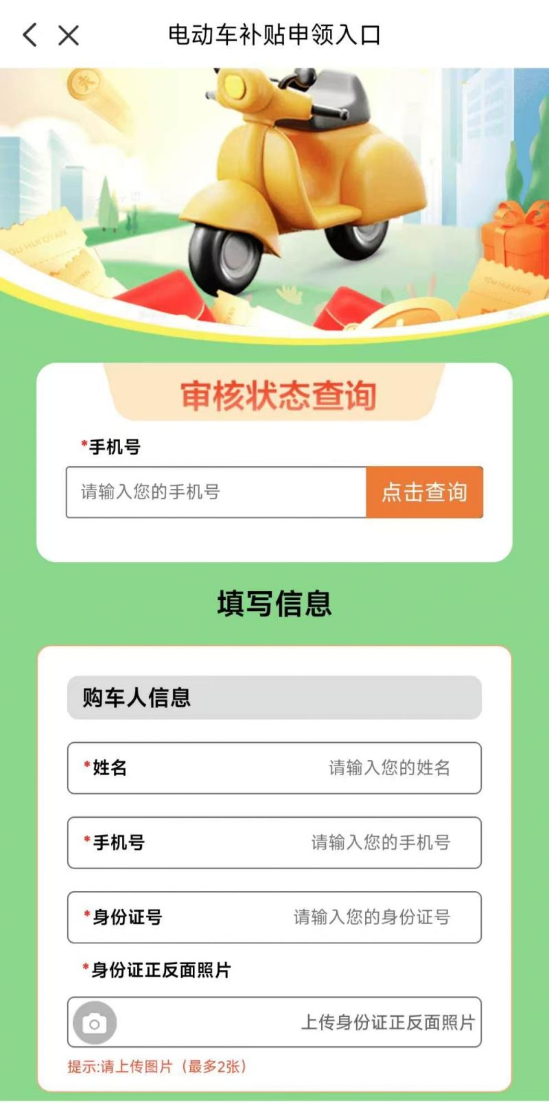 #### 4. 申请材料 - 购车发票原件及复印件。 - 身份证原件及复印件。 - 电动自行车合格证原件及复印件。 - 银行卡(用于接收补贴)。