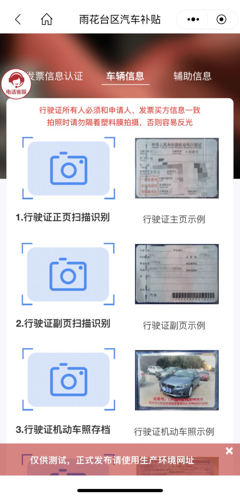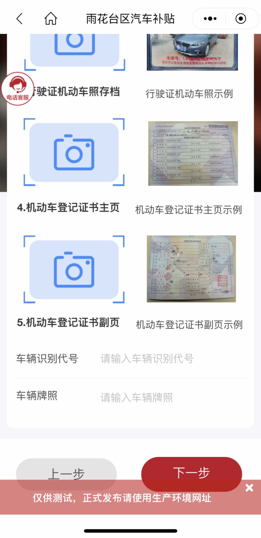 第四步:拍照或上传车辆行驶证信息、机动车登记证书信息照片,并填写车辆识别代号及车辆牌照信息,注意核对所有信息的准确性。