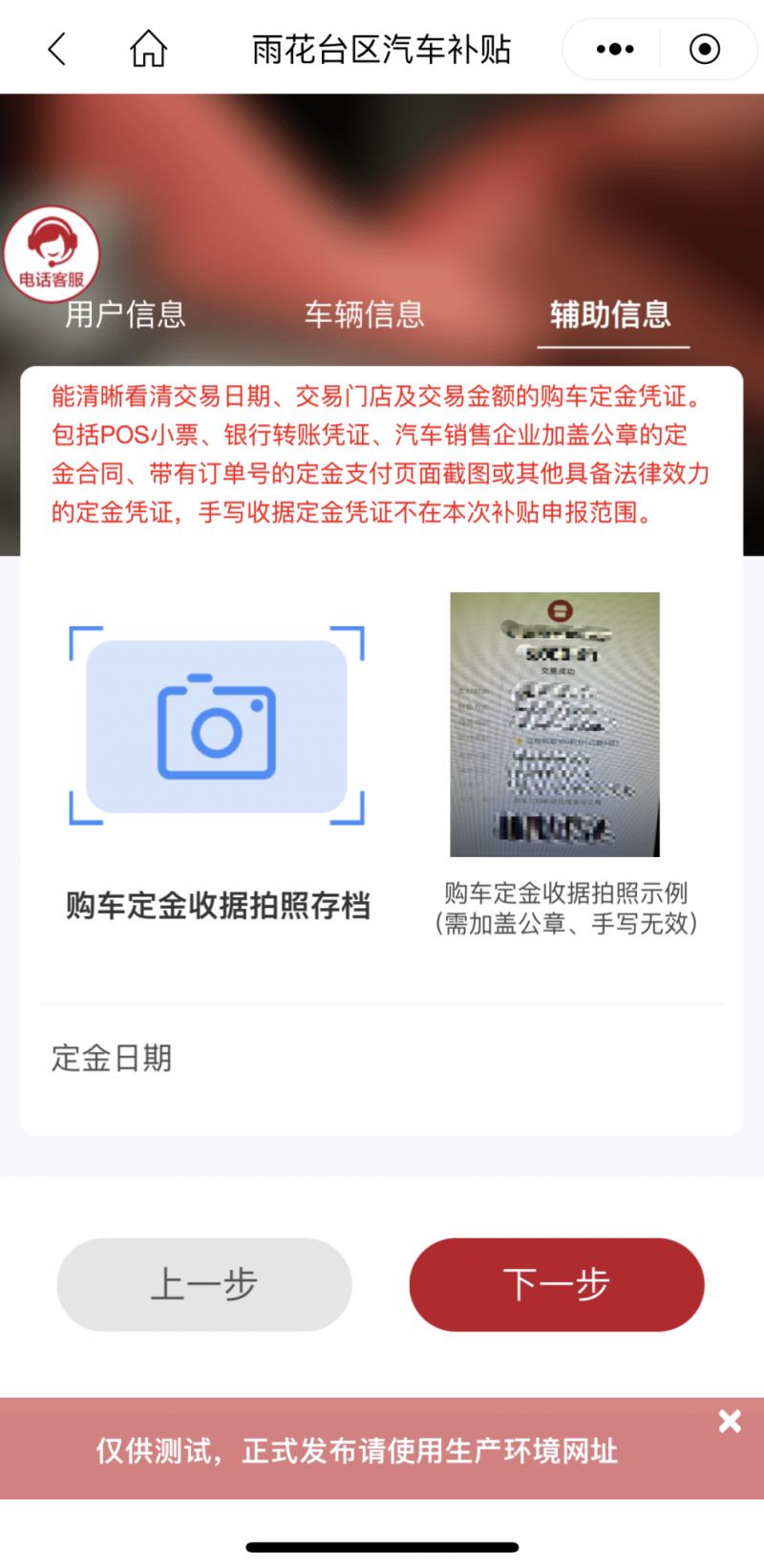 第五步:拍照或上传定金凭证照片,并填写定金日期。