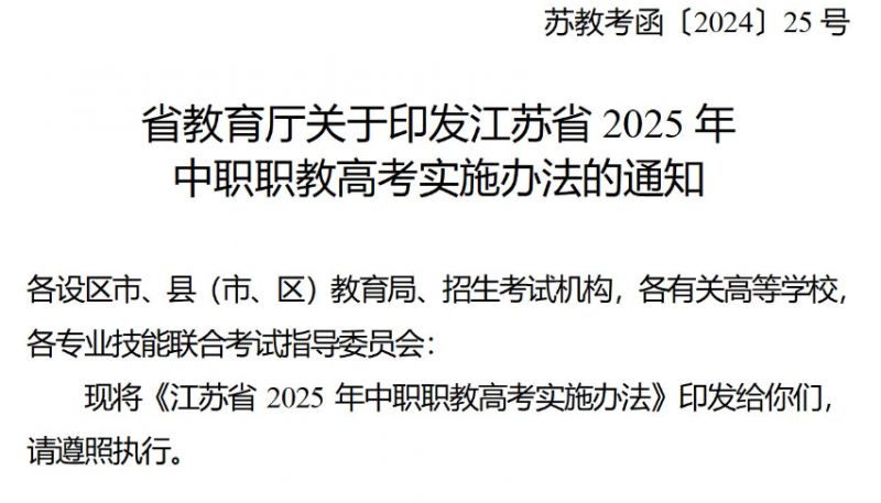 截至2023,关于江苏省2025年中职职教高考的实施办法、最新政策解读及通知发布,以下是一些可能的信息:
