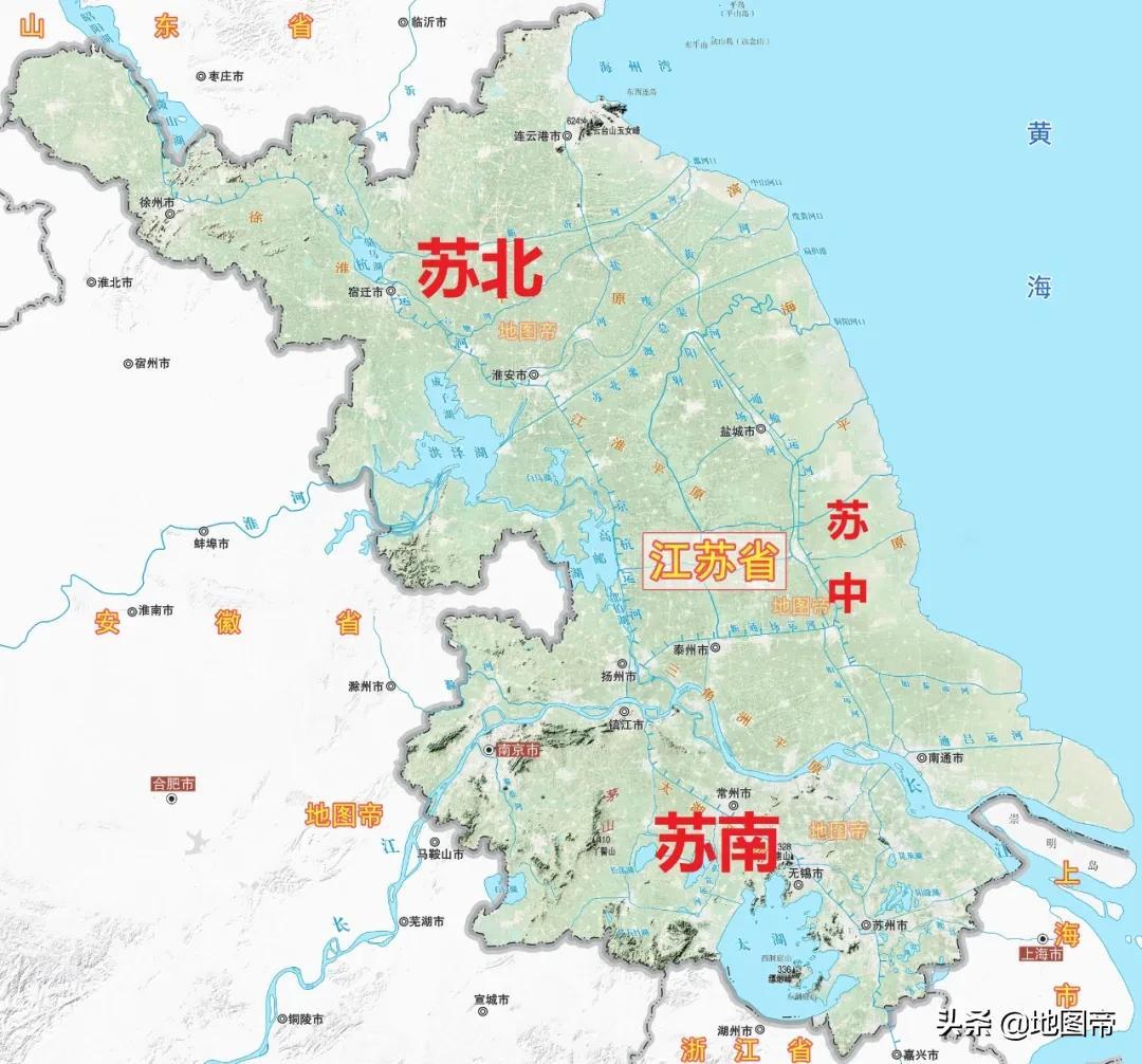 以长江为界是苏南,以语言区别是苏北。